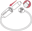 本体前面のフタをスライドし中にセットする。 - ② 付属のチェーンで首に掛け身に着ける。